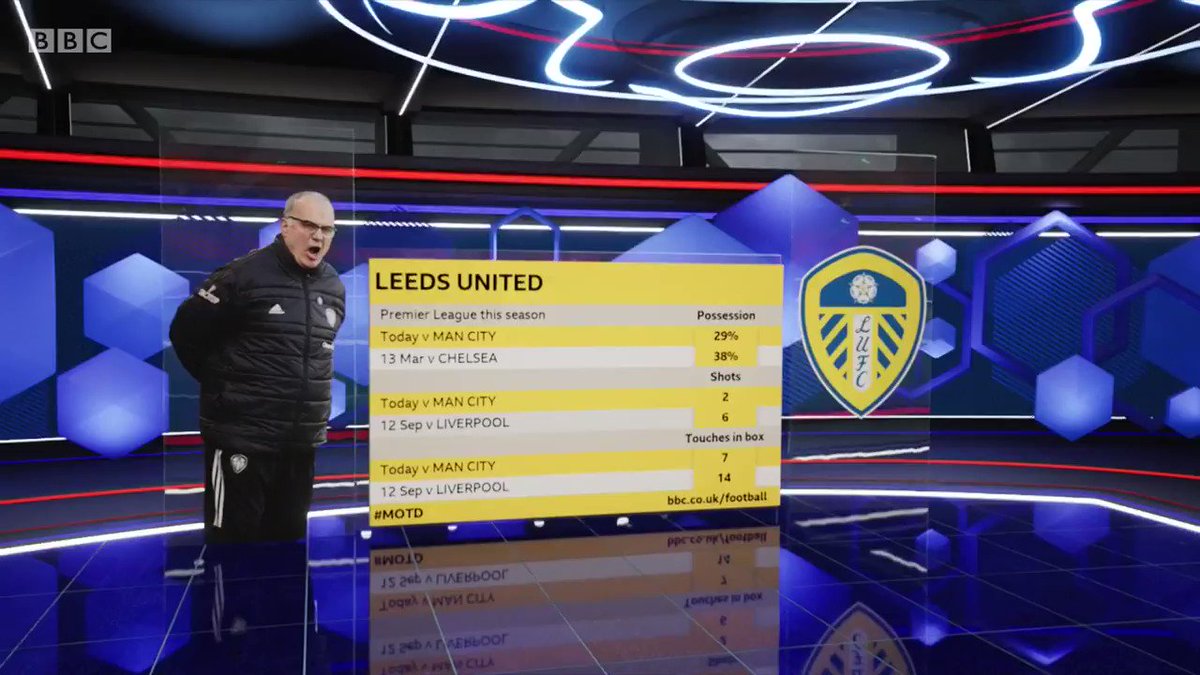 Marcelo bielsa praises 'rebellious' leeds. Manchester city had 29 shots and scored once, leeds united had 2 shots and scored twice.unbelievable stuff from bielsa's side. Pep guardiola's men will go 17 clear at the top if they secure win over the whites. Watch match of the day on saturday, 10 april at 22:20 bst on bbc one, bbc iplayer and the bbc sport bielsa praises leeds after win at man city. Rodrigo earns point for hosts after raheem sterling opener.